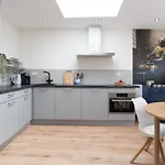 Eine komplette Küche, die in der Villa Pakhuis Achter - Rustig Gelegen Vlakbij Amsterdam, Strand & Zaanse Schans angeboten wird, verfügt über einen Wasserkocher, einen Kühlschrank und Glasgeschirr. Verbringen Sie einen schönen Abend im Restaurant Bonsai, das ungefähr 100 Meter von hier entfernt liegt. Die Unterkunft liegt in der Nähe vom Busbahnhof Edisonstraat und bietet eine gute Anbindung an viele Sehenswürdigkeiten.